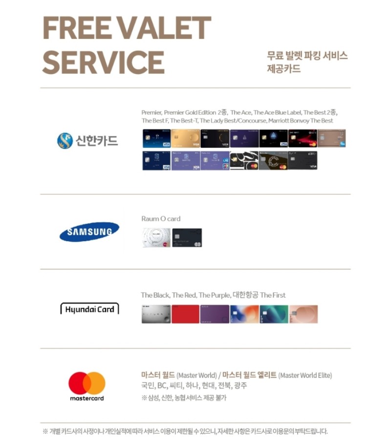 무료 발렛 서비스 제공 신용카드가 달라져요