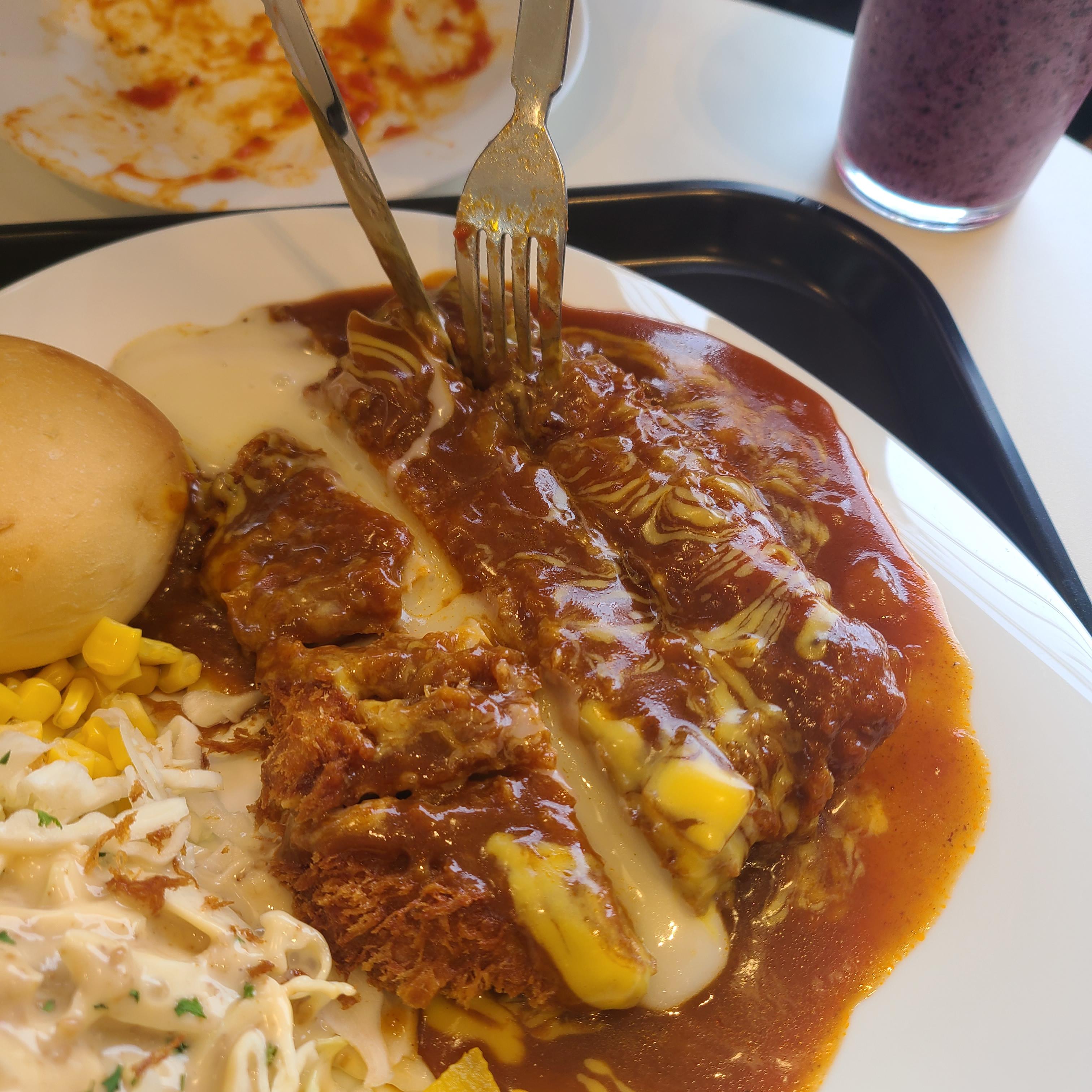 겉이 바삭하게 튀겨진 돈까스와 치즈가 너무 찰떡이예요. 강추강추드려요~