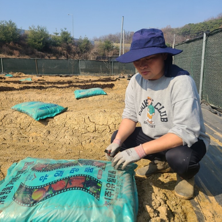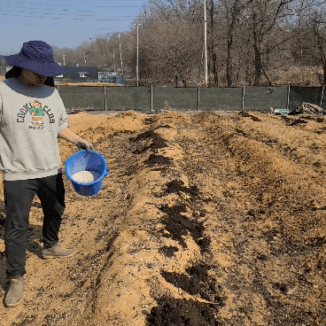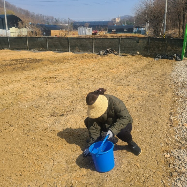 농장에 뿌려주고 갈퀴로 흙과 섞어주면 끝이 납니다.