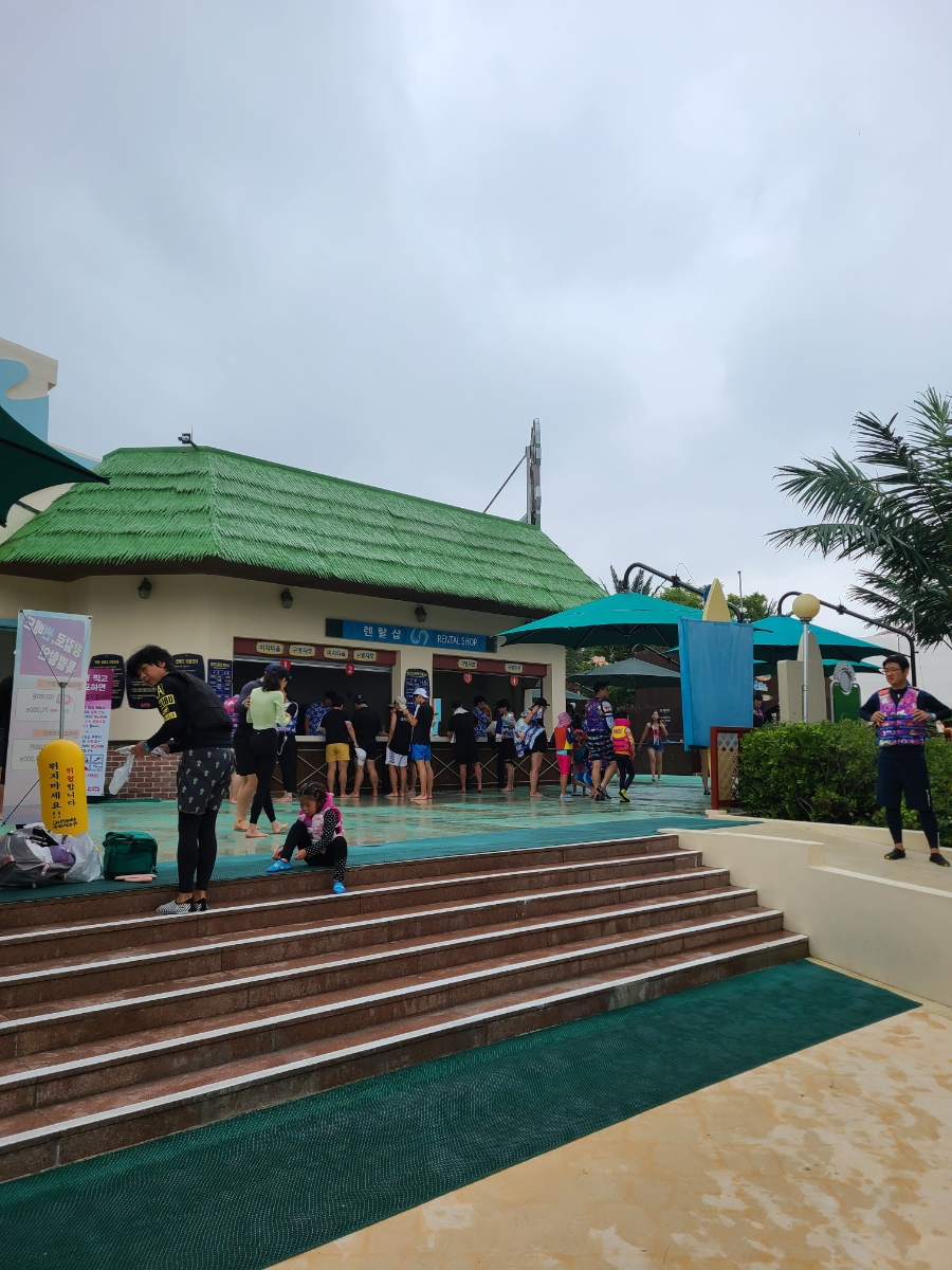 입장하자마자 구명조끼를 빌려야 놀수 있어요