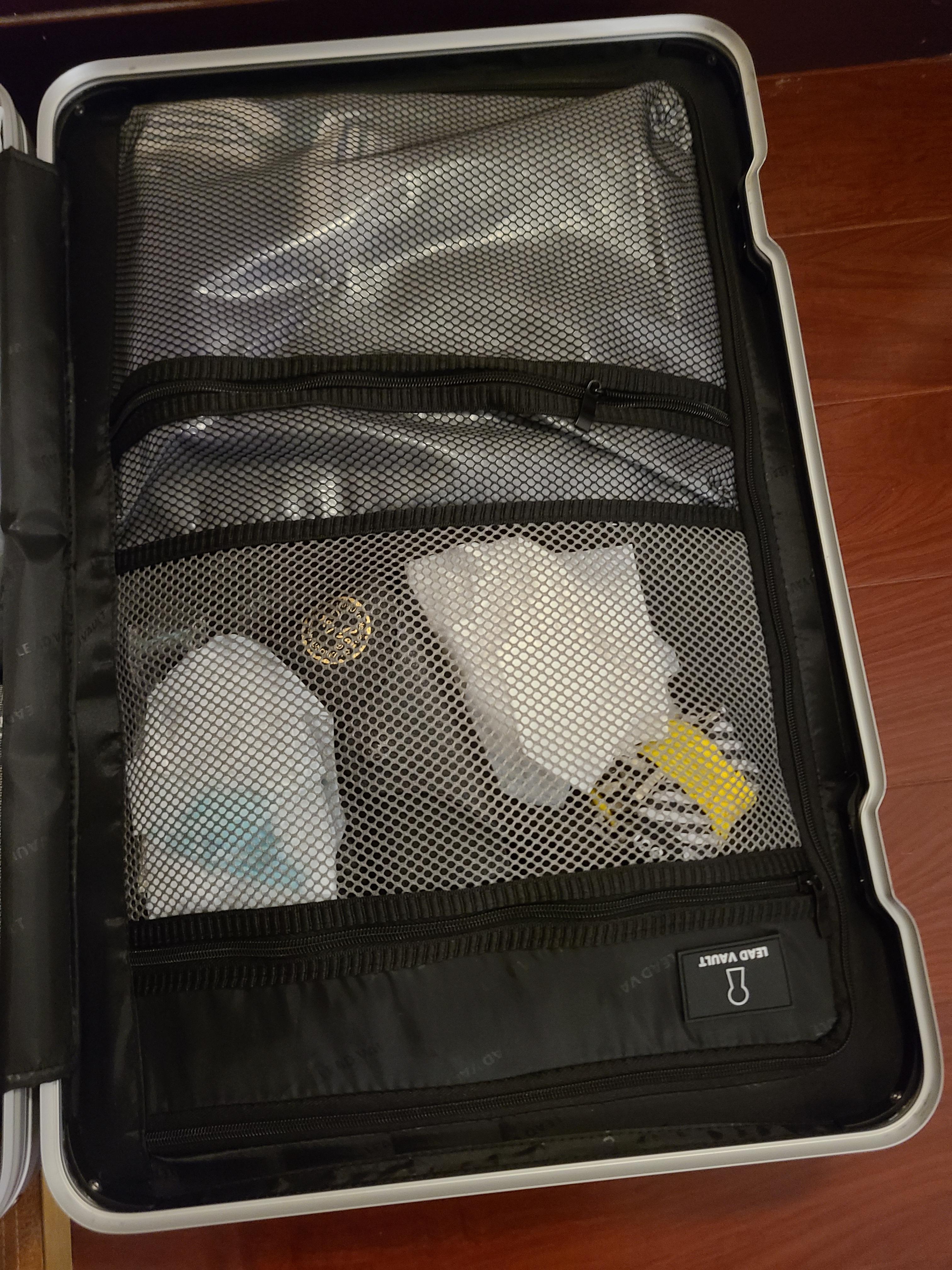 모든 캐리어에 있는 매쉬 수납공간도있는데요