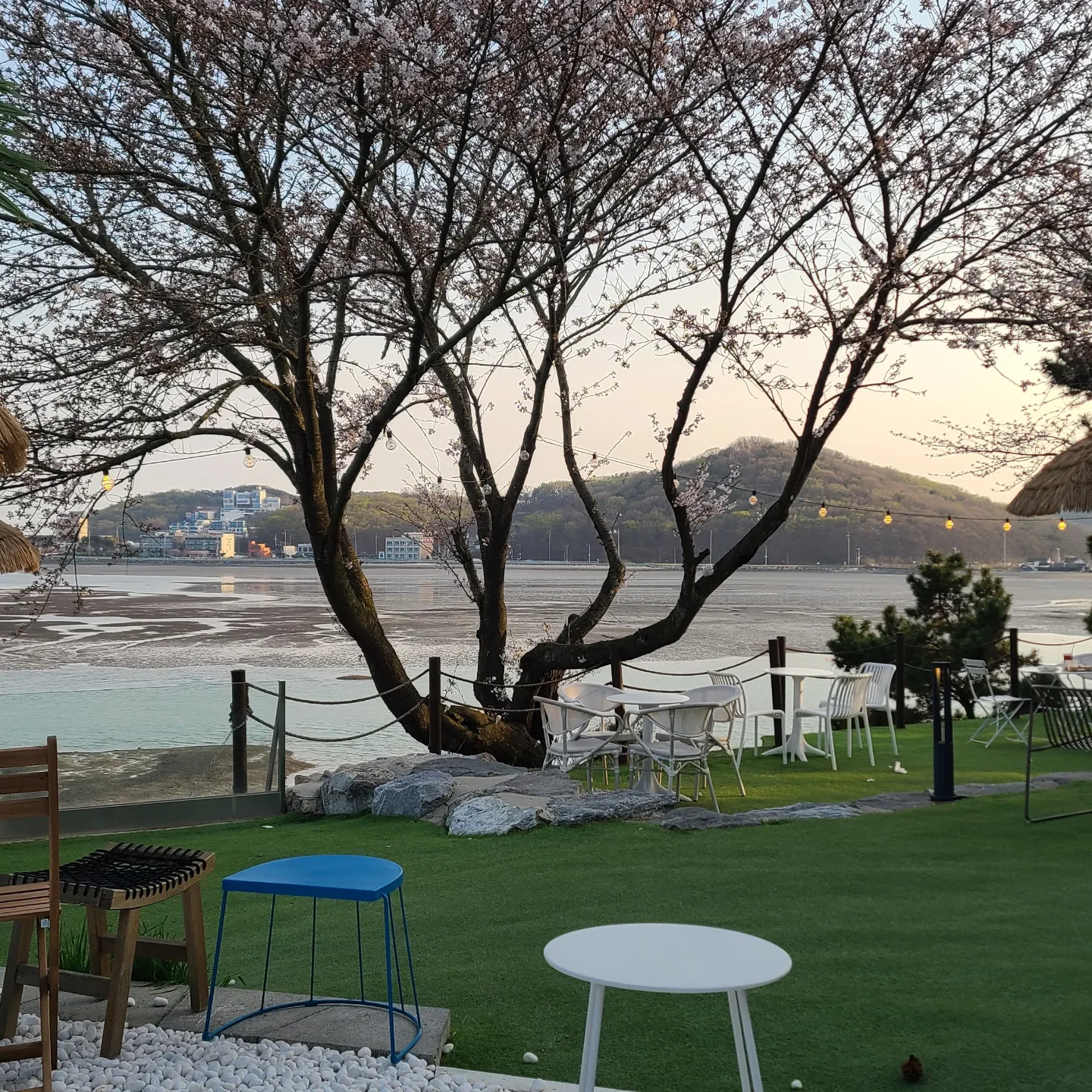 플로레도 카페 야외에 큰 벚나무가 있는데