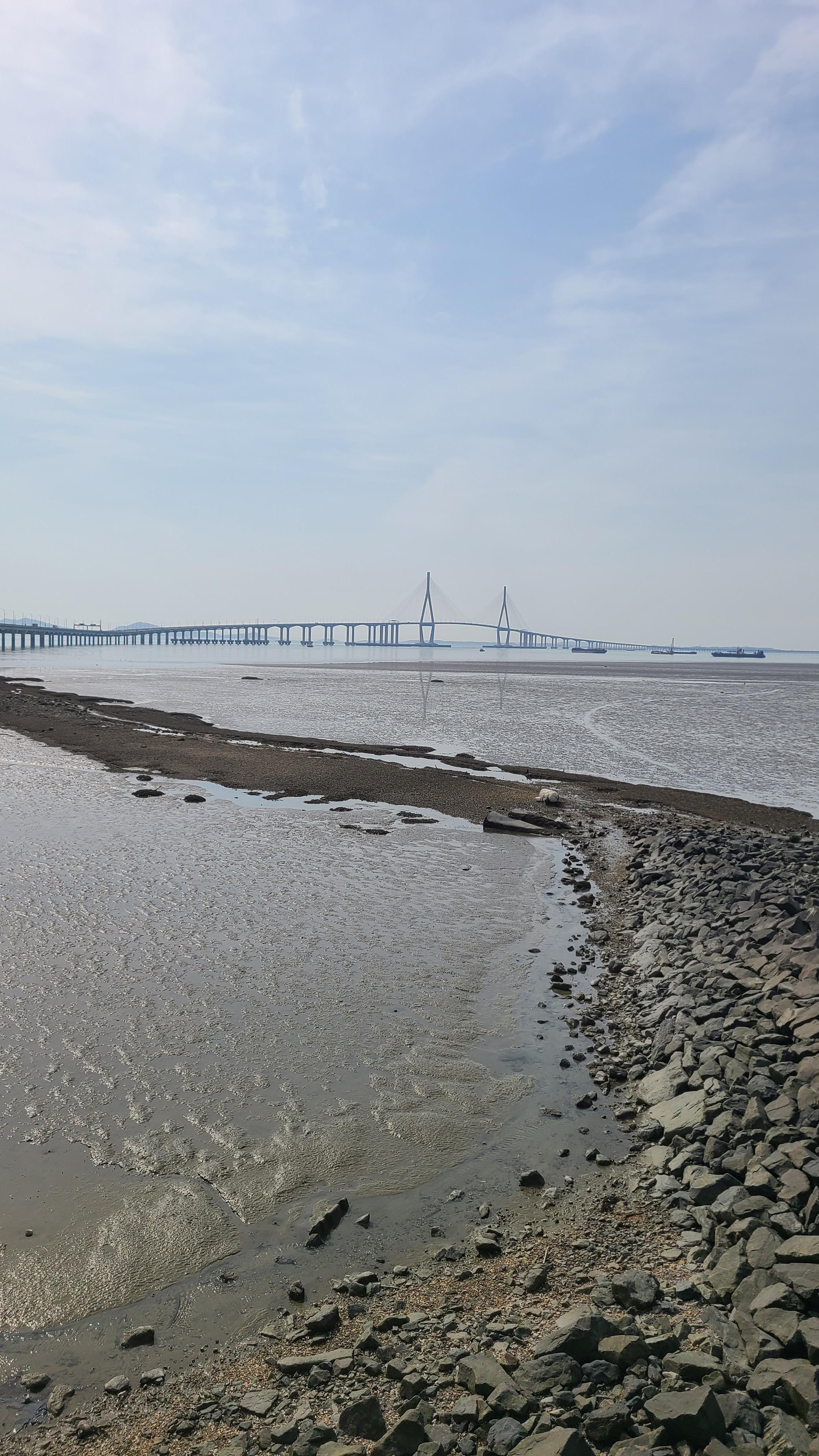 인천대교로 들어가는 다리 밑에서
