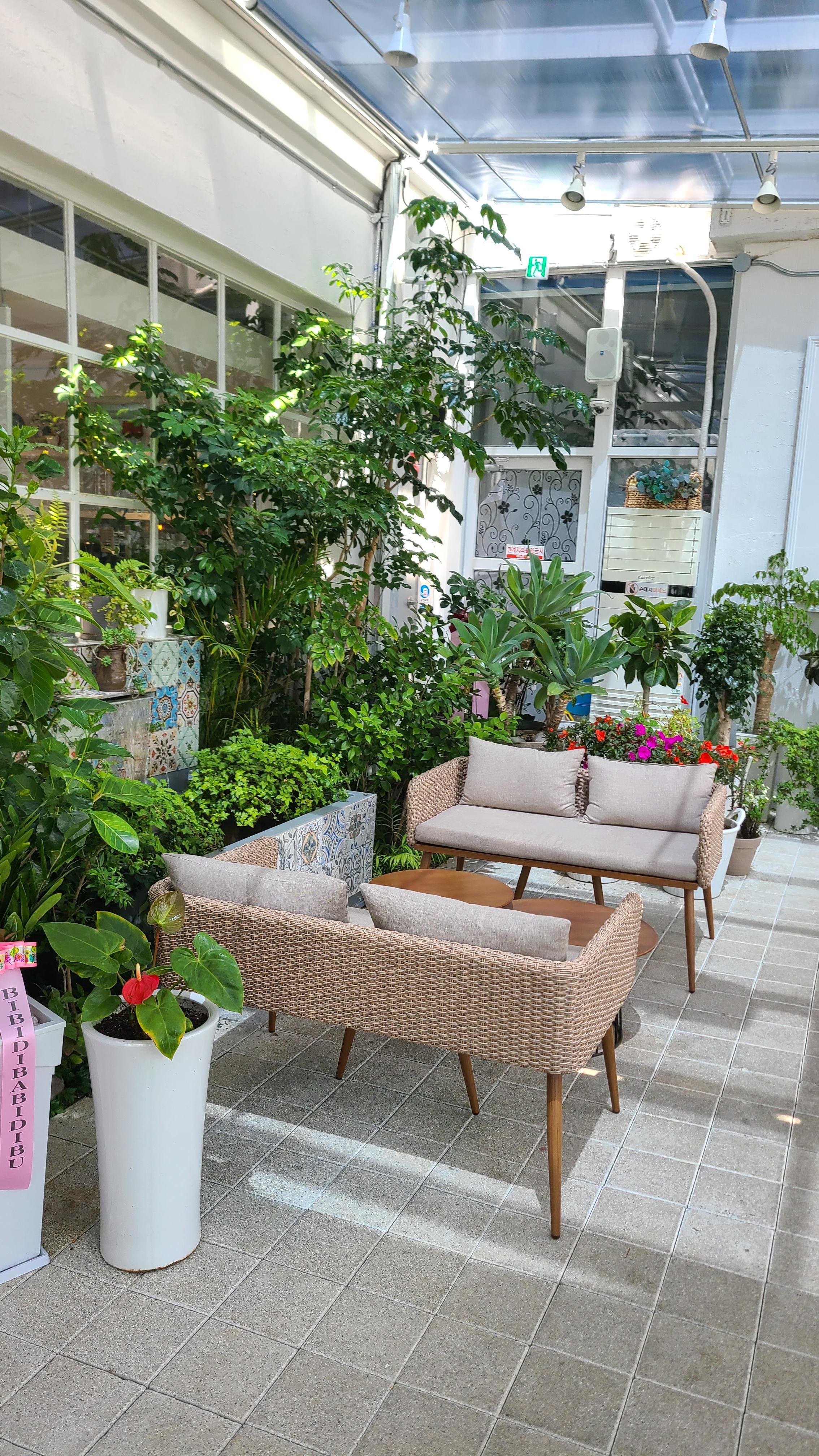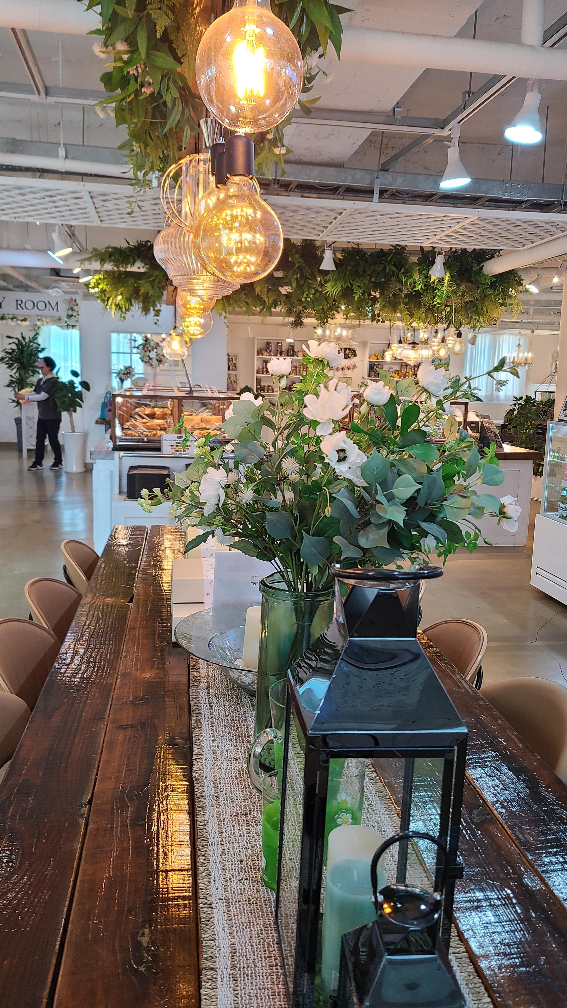 카페 전체가 생화와 식물들이