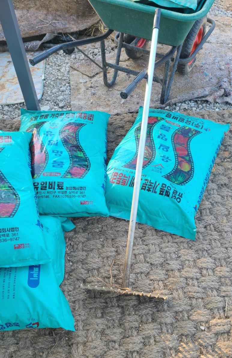 '퇴비를 어떻게 줘야 하는지 넘 어렵다' 하시는 분들도 계십니다.퇴비의 입구르 쭉~ 개봉해서 농장에 뿌려주고 갈퀴로 흙과 섞어주면 끝이 납니다. 생각했던 것보다 참 쉽습니다.