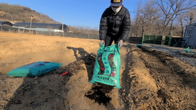 화학비료는 밭 만들기 한 달 전에 밭에 전체적으로 영양분을 제공한다고 생각하고 골고루 뿌려주면 됩니다.