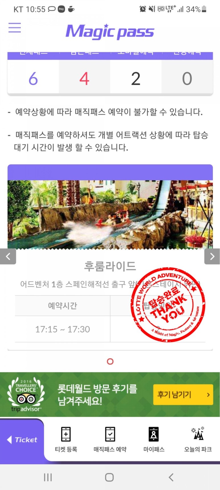 입장 후 매직패스는 이용할 수 있습니다. 입장하자마자 롯데월드 앱에서 내 입장권을 등록합니다. 내 입장권을 등록해야만