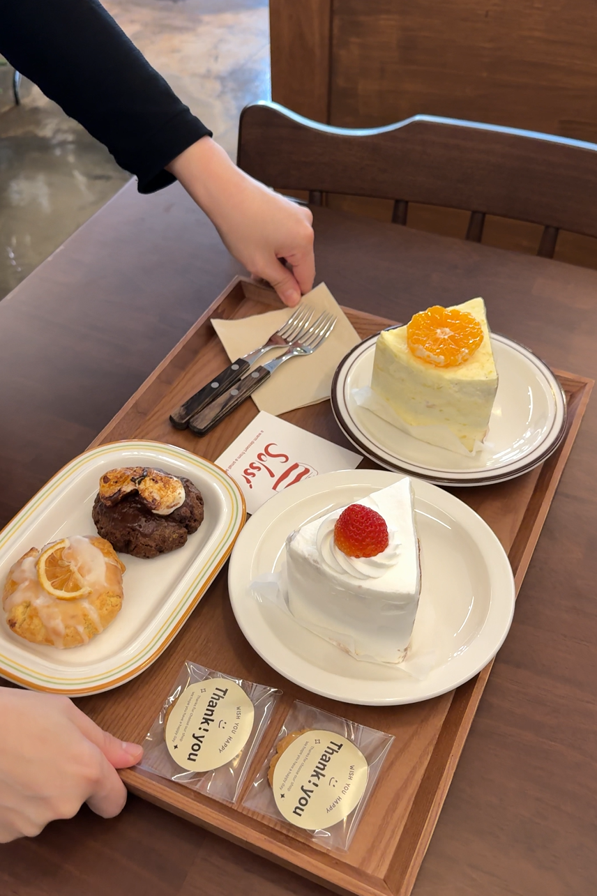 사장님 추천으로 제일 잘 나간다는 케이크 두 가지를 먹어봤어요.