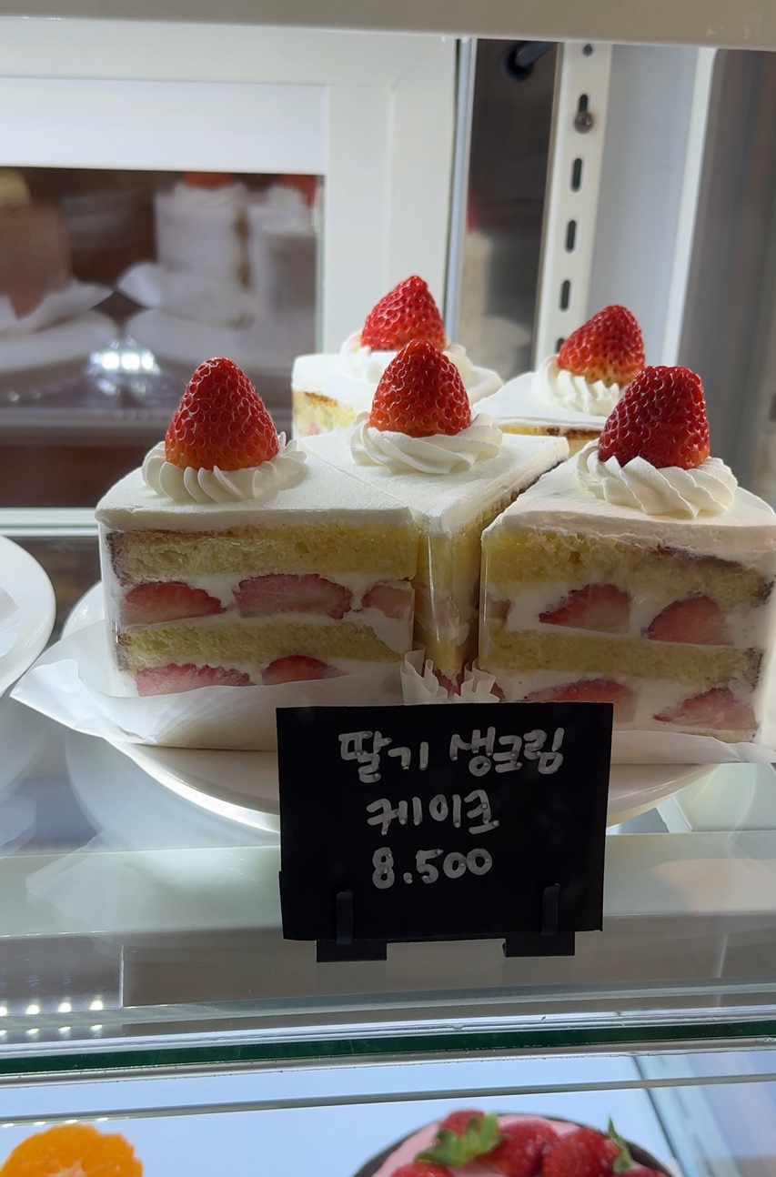 딸기 케이크🍓: 생크림은 부드럽고 달달한데, 제철 딸기가 상큼해서 정말 프레시해요.