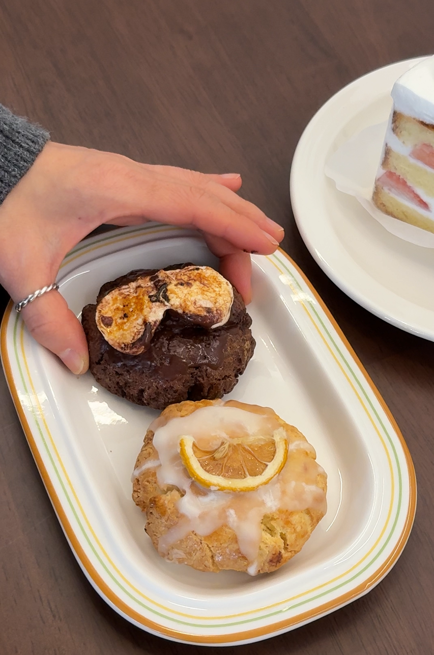 초코 마시멜로우 스콘🍫: 보기보다 많이 안 달아요. 다크한 아메리카노랑 먹으면 궁합이 최고고요.