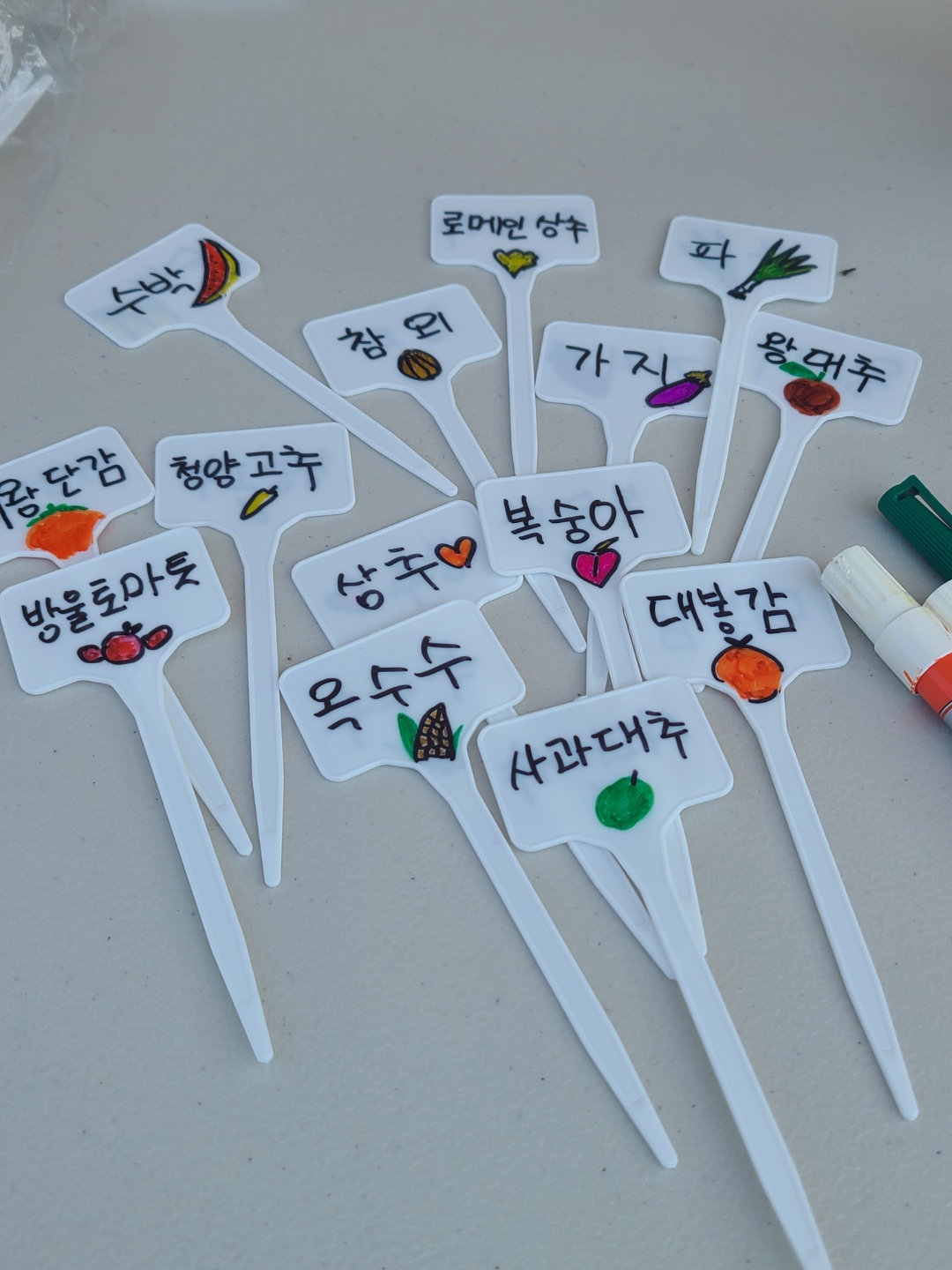오늘은 농작물에 이름표를 달아줬습니다.
