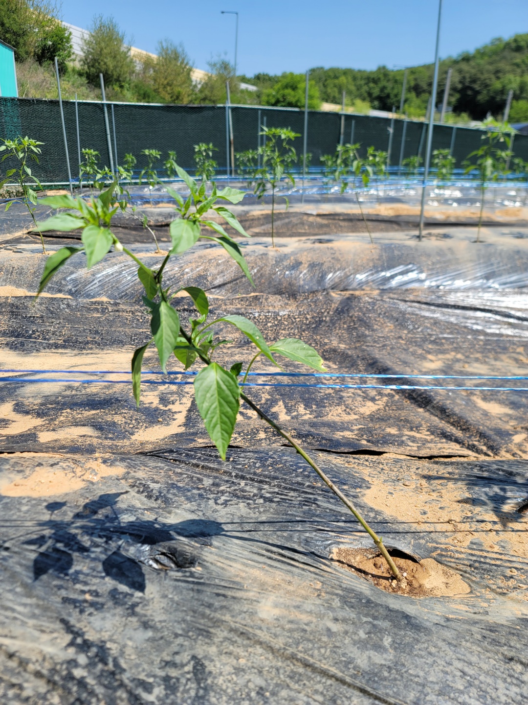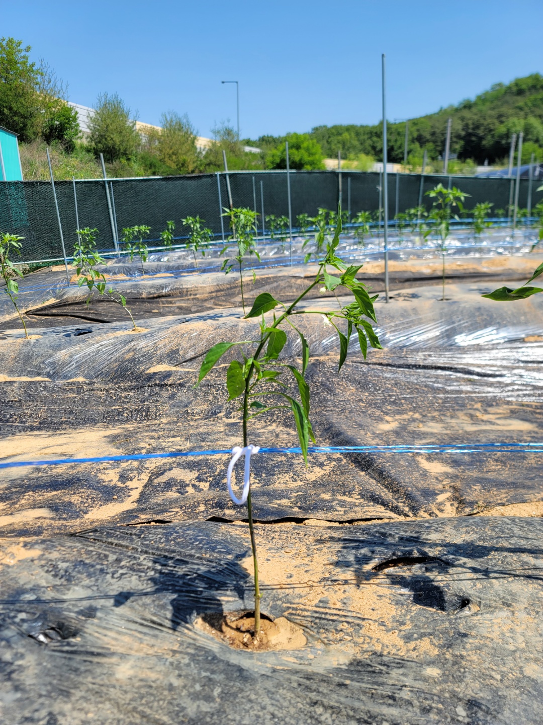 고추 지지대를 설치하고 줄만 쳐 놓은 상태라 바람이 불면 고추 줄기가 흔들리네요.