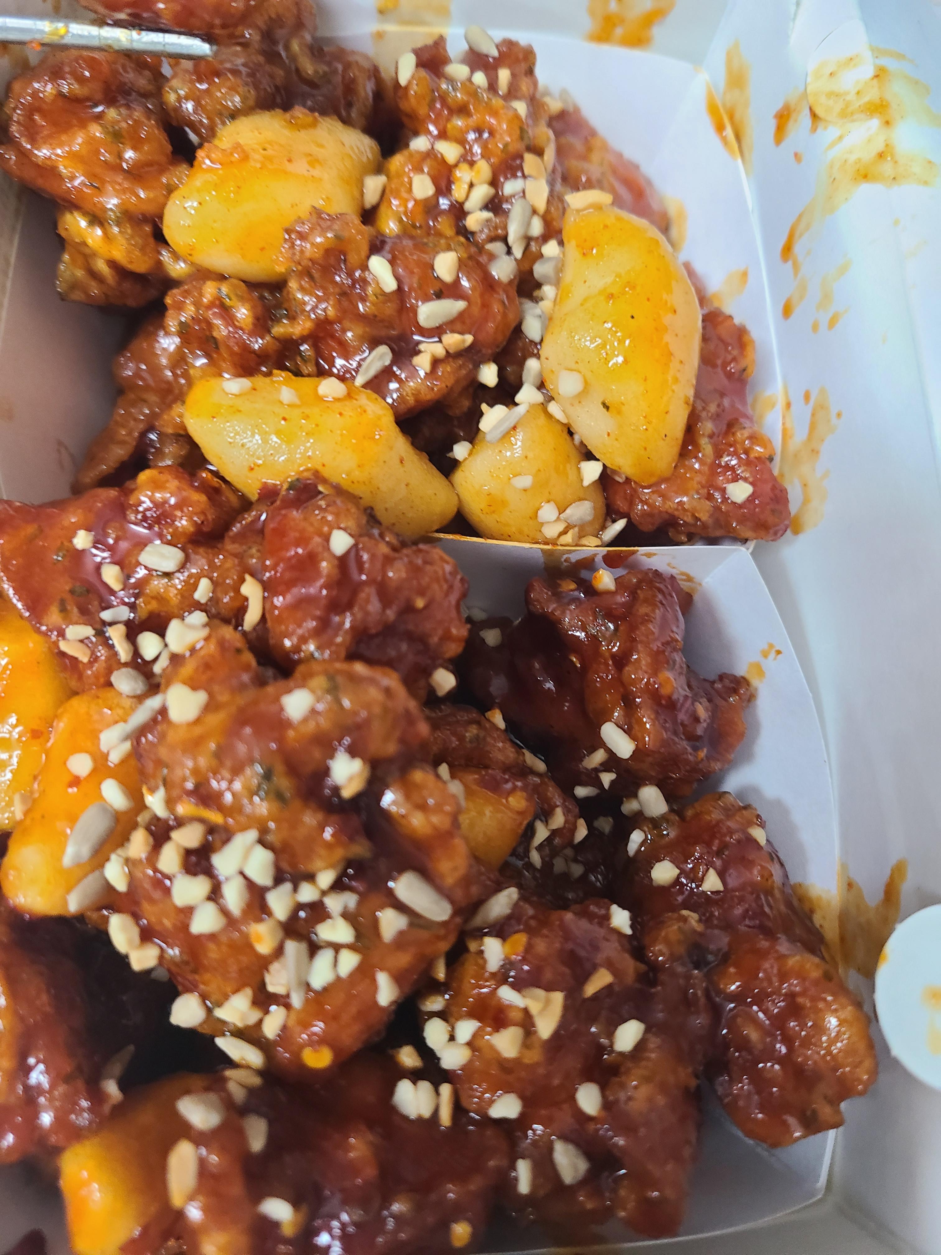 닭강정은 바삭하고 맛은 있는데