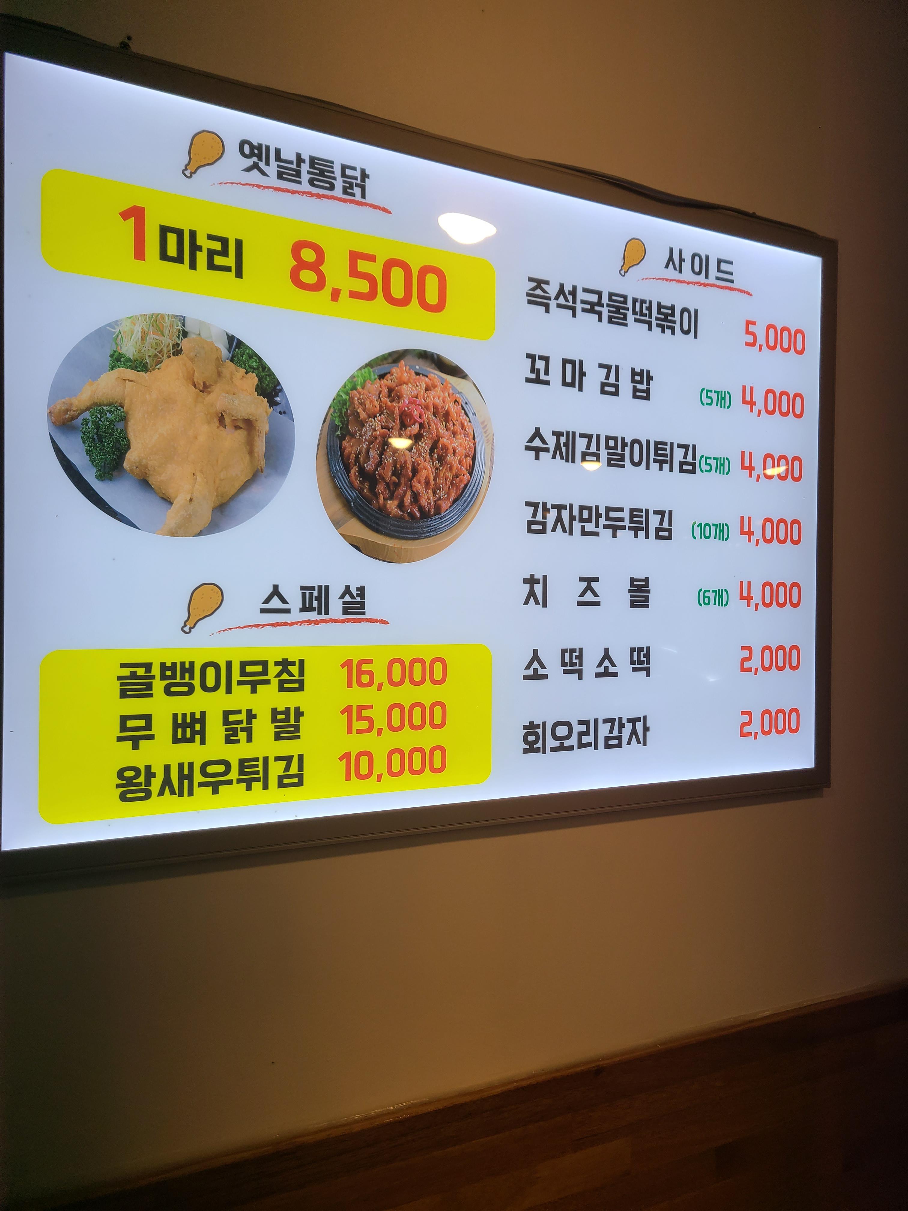 세븐닭강정 메뉴와 가격입니다.