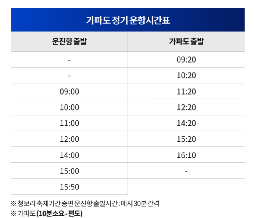 가파도에서 운진항으로 들어오는 막배는 16시10분입니다.