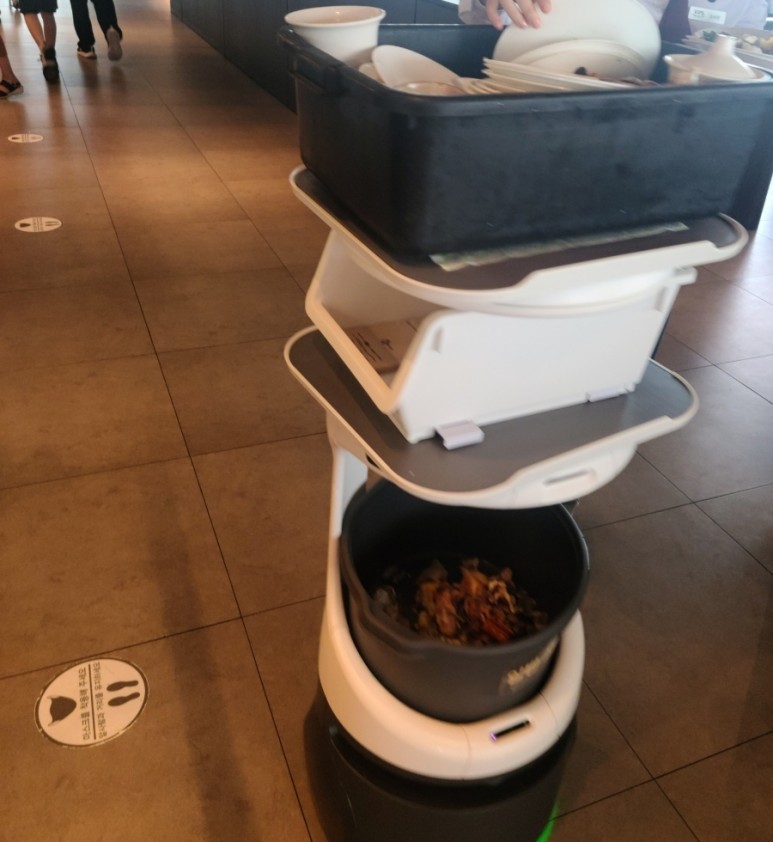 로봇이 그릇 청소도하고 간단하게 자리도 안내해줍니다.