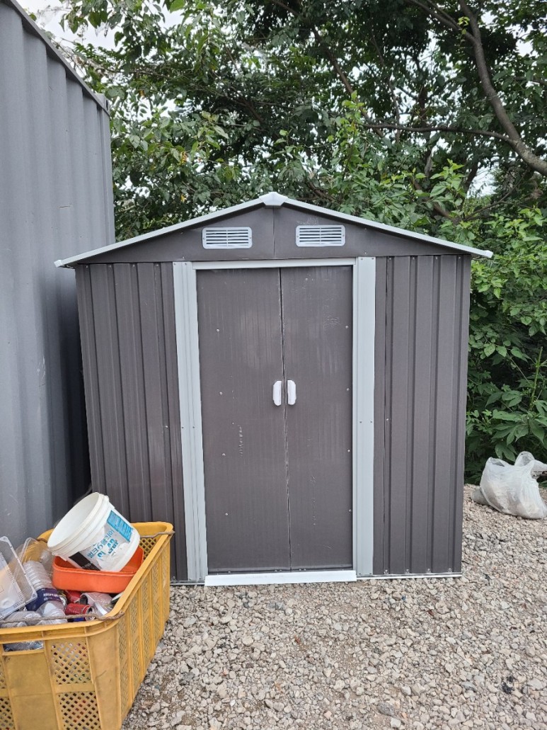 셋째, 농장에 하나씩은 다 있는 회색 콘테이너 박스 옆에 두면 조화롭게 잘 어울릴거 같았어요. 잘어울린답니다.