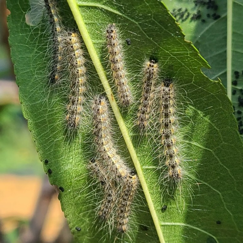 감나무에 감은 없고 송충이만 한가득입니다.