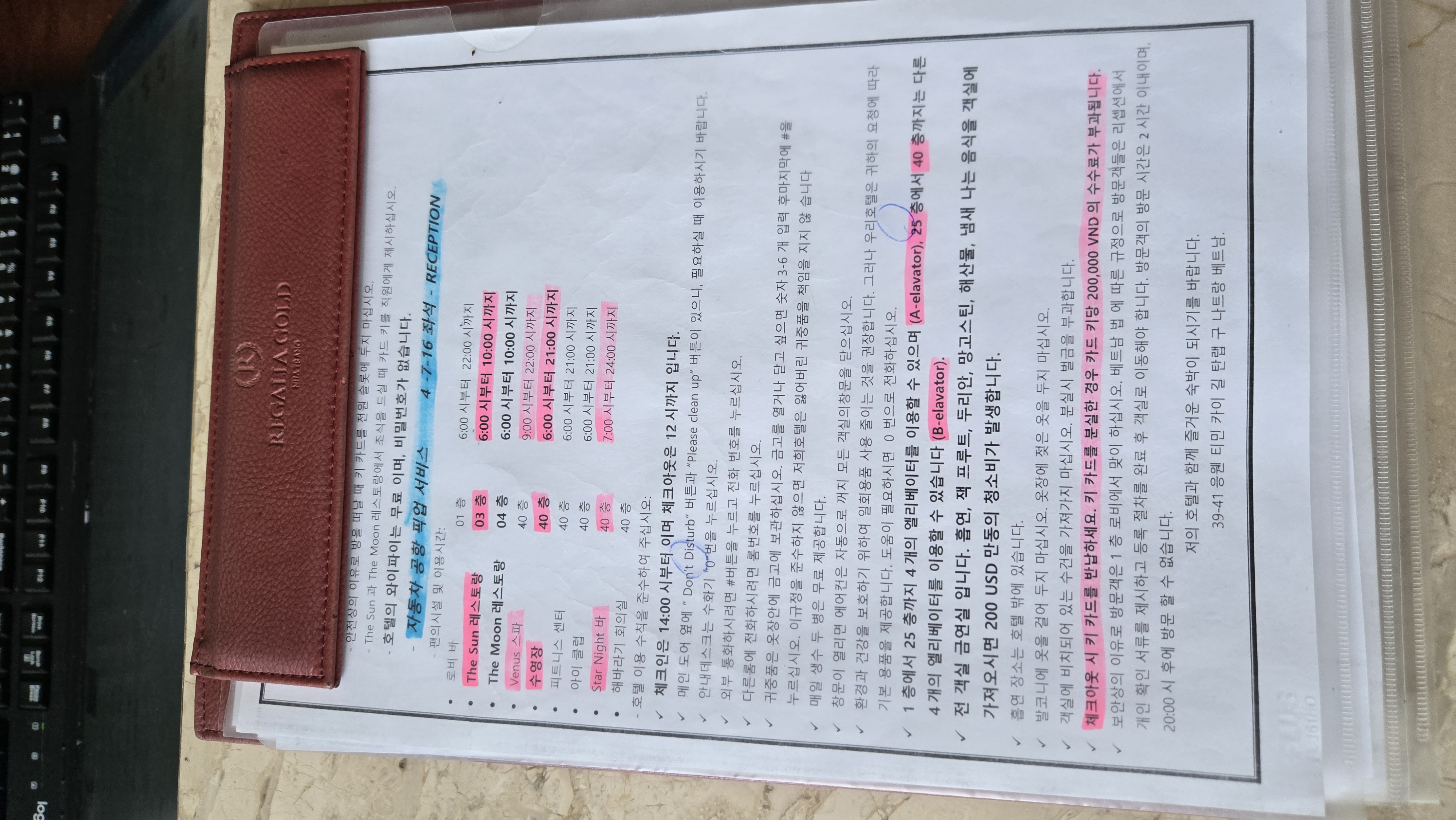 로비에 체크인 /아웃 시간에