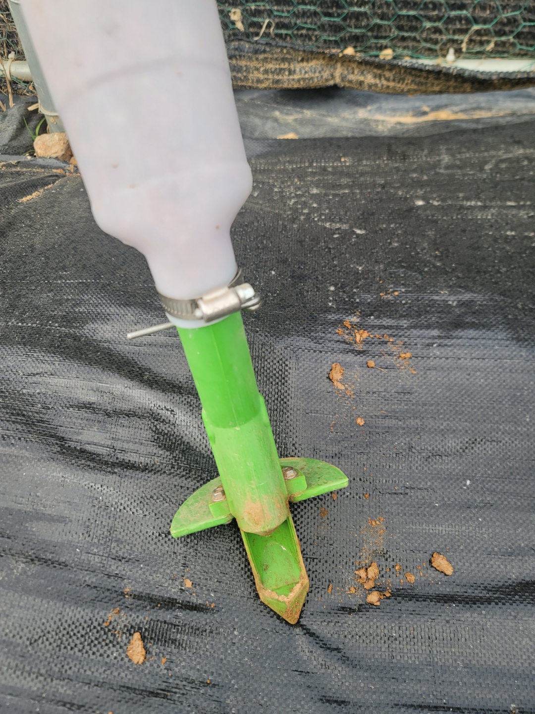 비료 주입기로 구멍을 뚫으면서 작업해도 되나 구멍을 뚫을때 흙이 주입구 사이에 끼이면서 투입구가 막히는 단점이 있습니다.