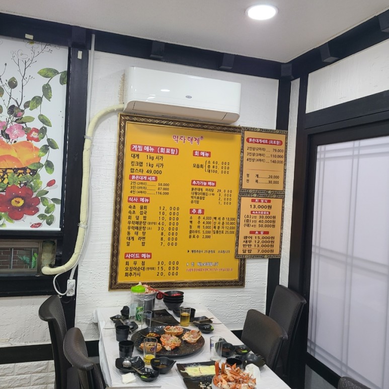 먹자대게 메뉴판입니다.
